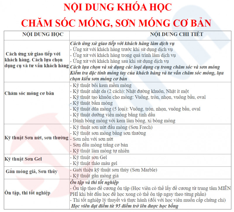 | 1 | Khóa học Chăm sóc móng & sơn móng cơ bản