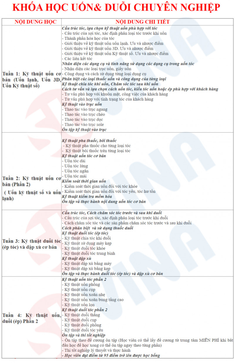 Khóa học kỹ thuật uốn&duỗi tóc chuyên nghiệp đào tạo cho học viên từ chưa viết gì về uốn và ép đến khi thành thạo kỹ thuật uốn ép Học xong khóa học, học viên thành thạo về các kỹ thuật sau: